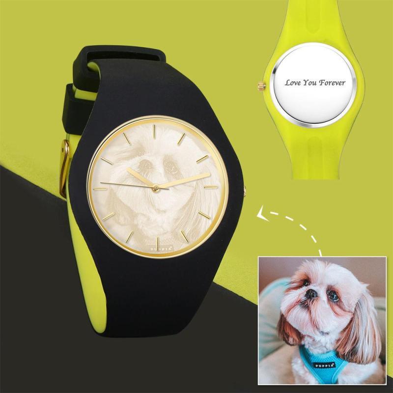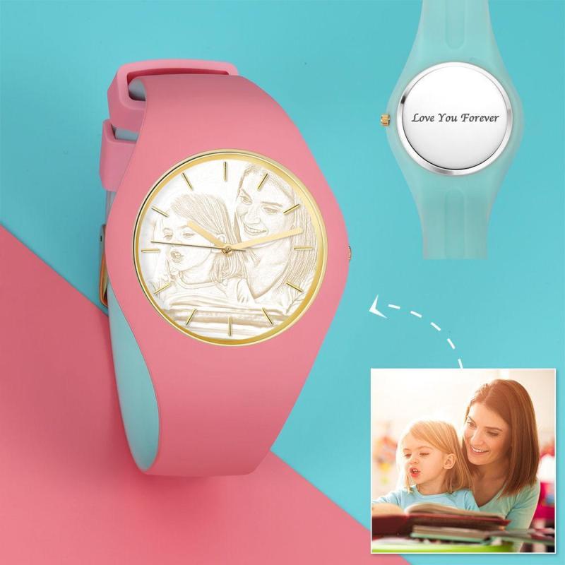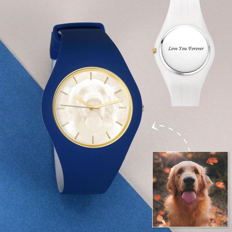 Reloj Con Foto Grabado Unisex De Silicona Reloj Con Foto Grabado Unisex 41 Mm Correa Azul Y Blanca - Dorado