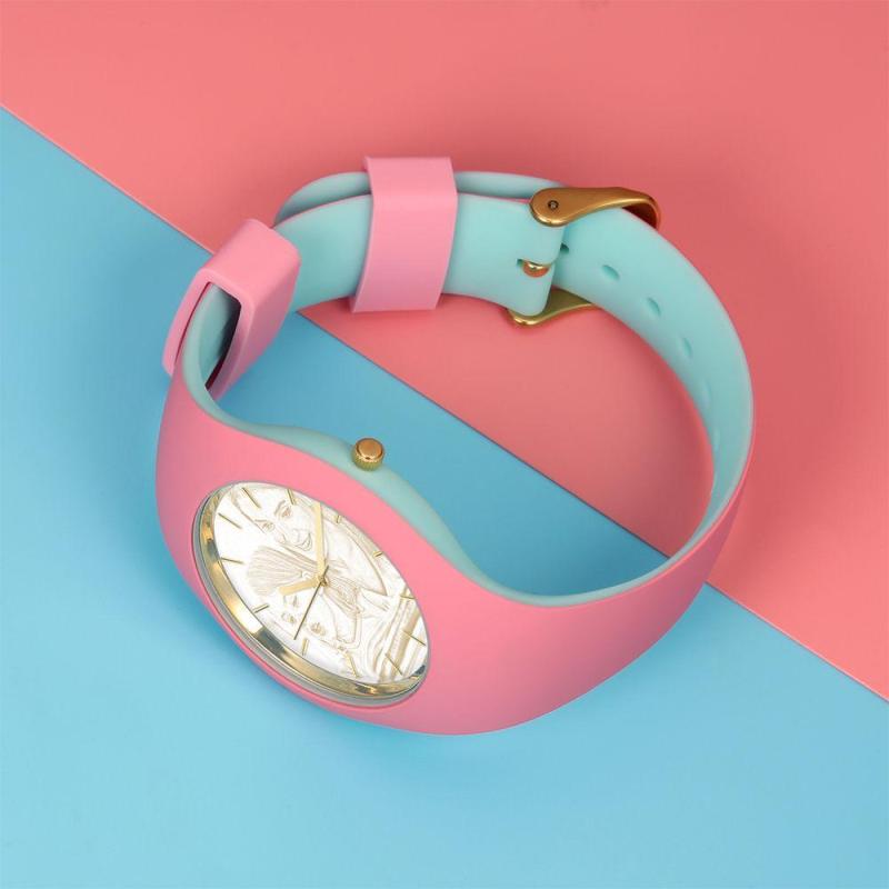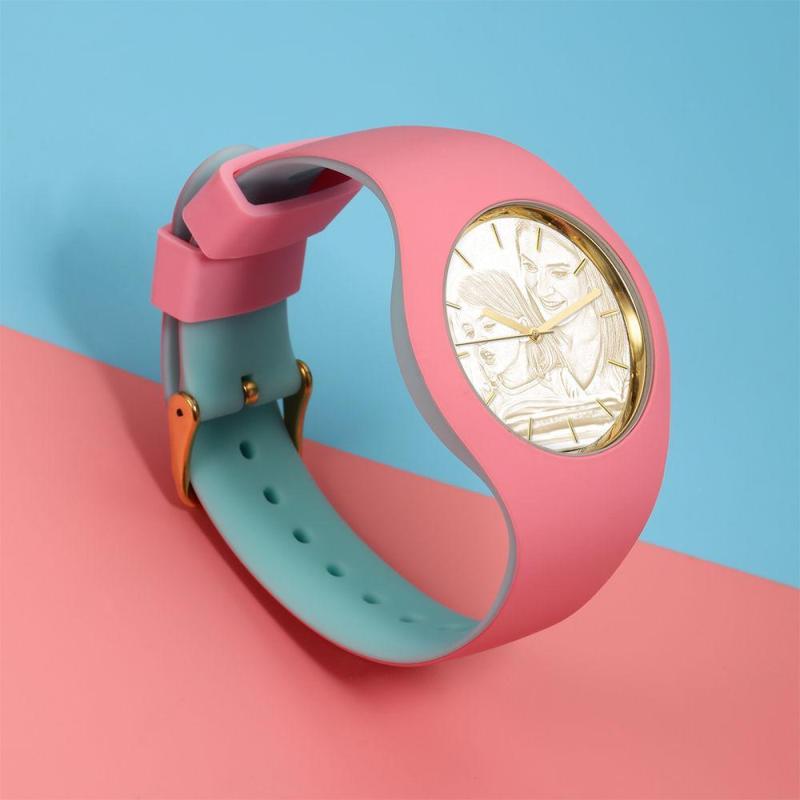Reloj Con Foto Grabado Unisex De Silicona Reloj Con Foto Grabado Unisex 41 Mm Correa Rosa Y Azul - Dorado