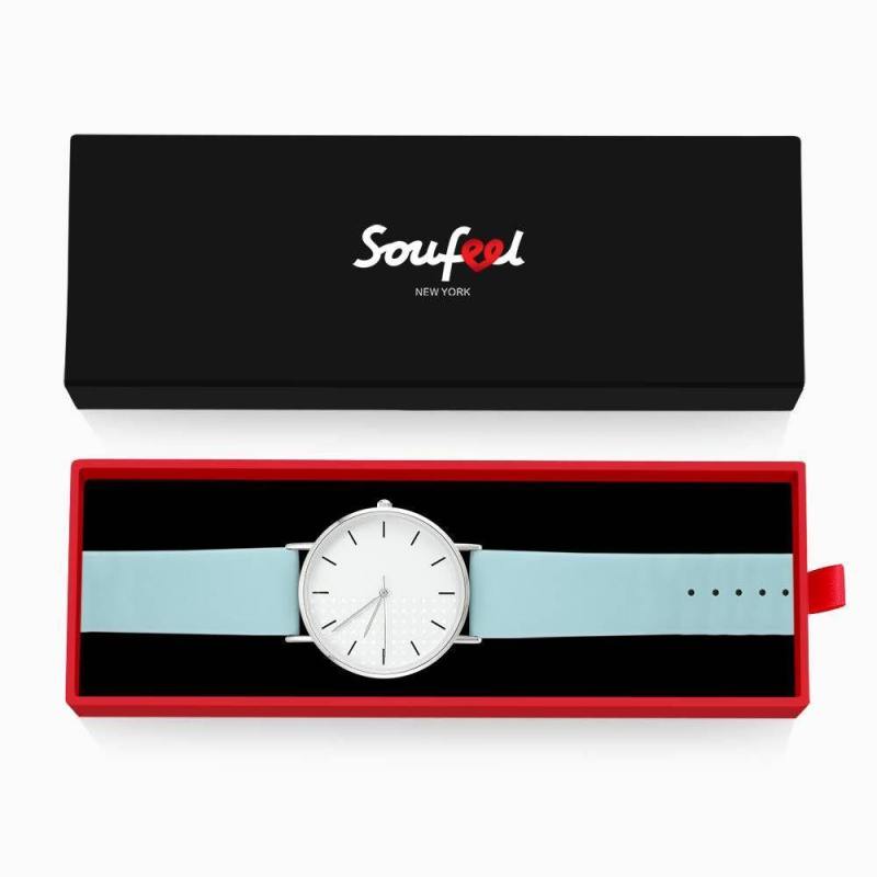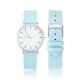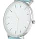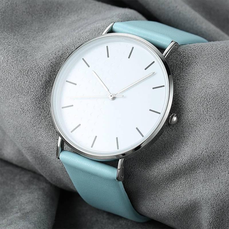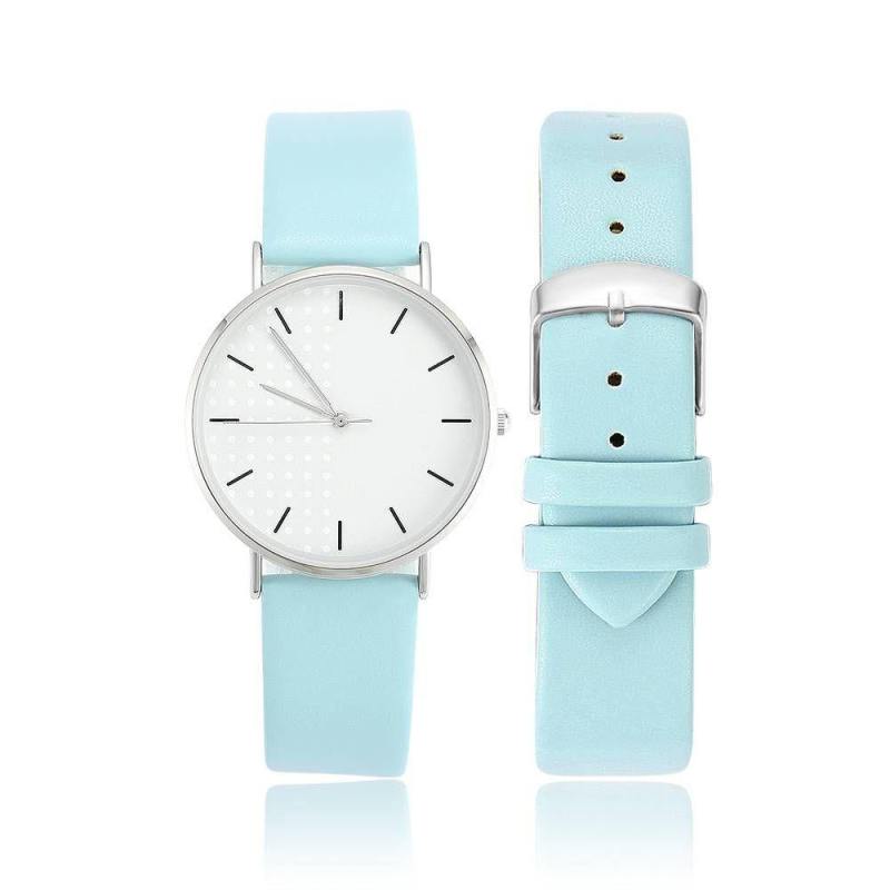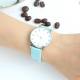 Reloj De Esfera Blanca Correa De Cuero Azul De Cuarzo De Moda - Mujer