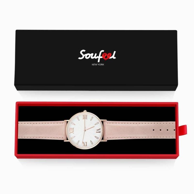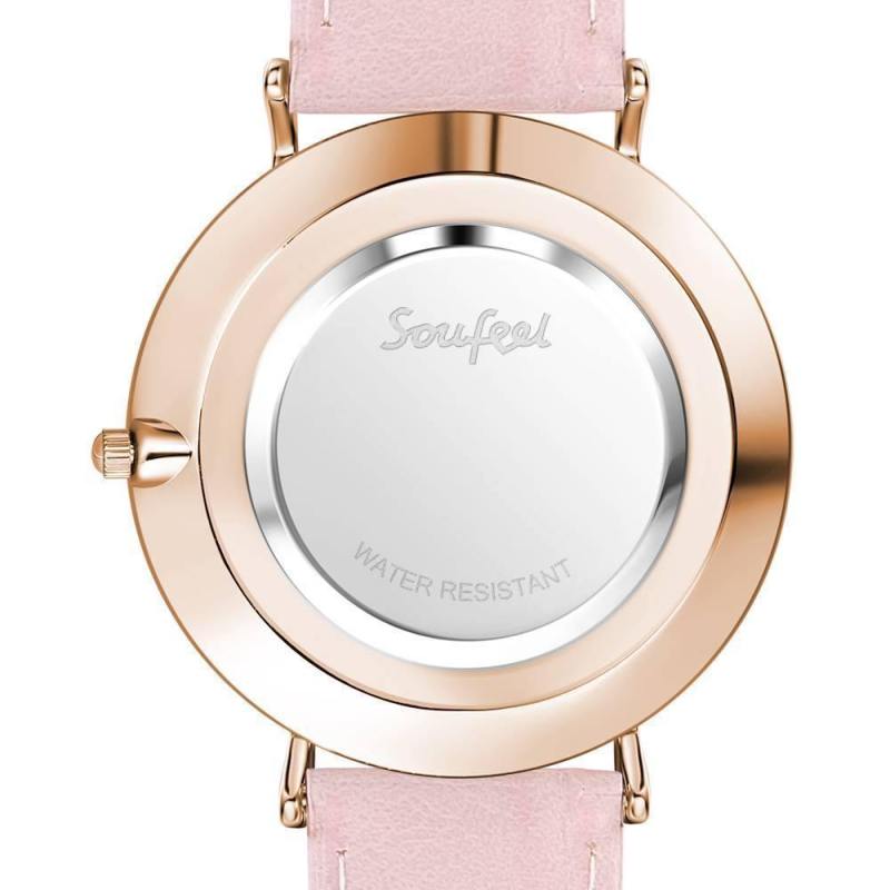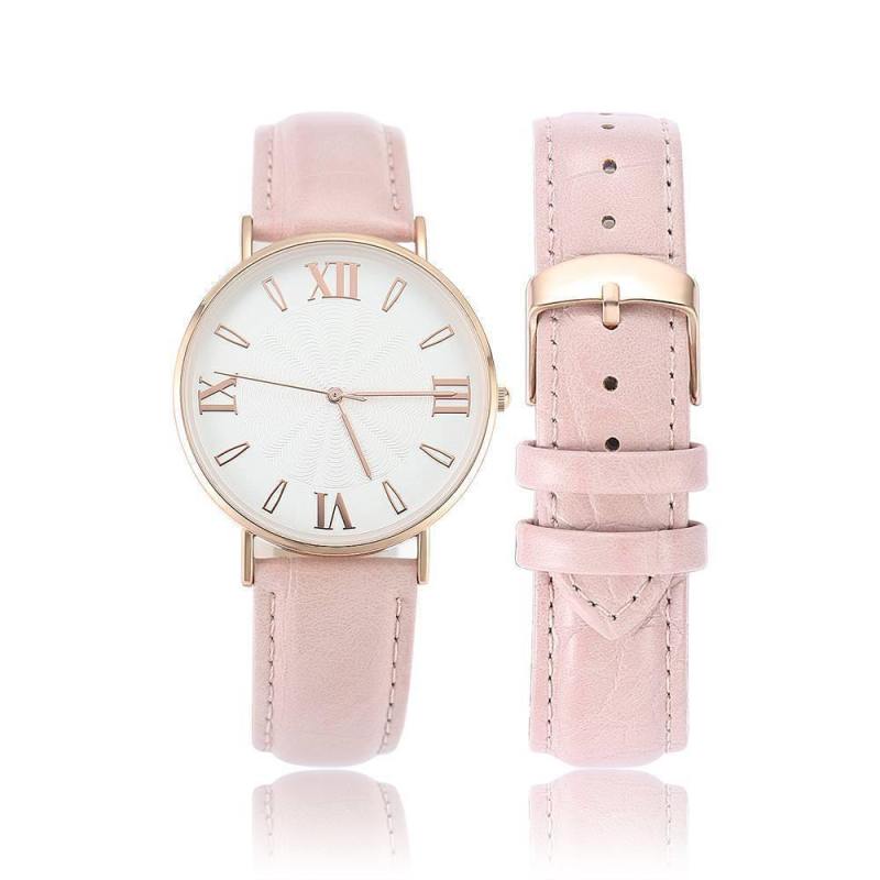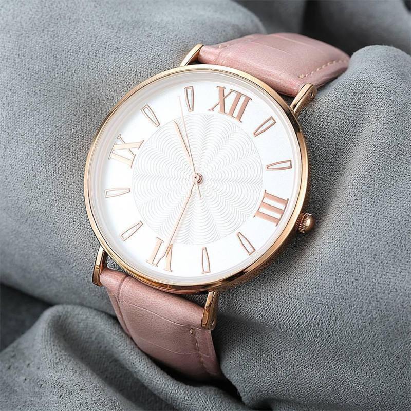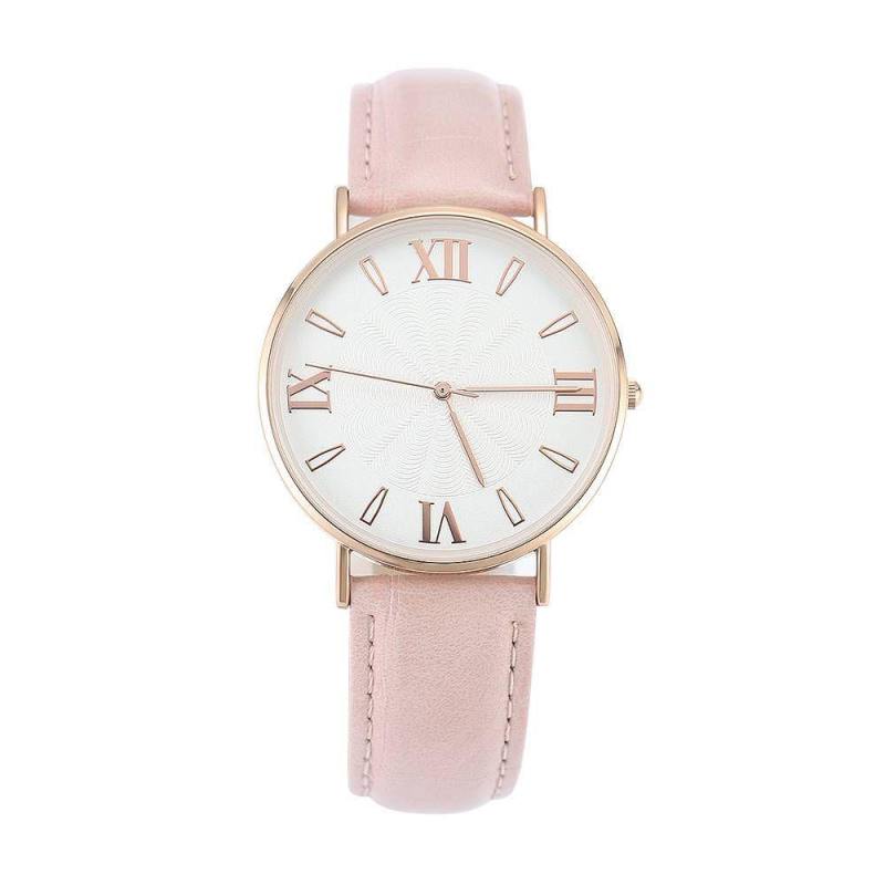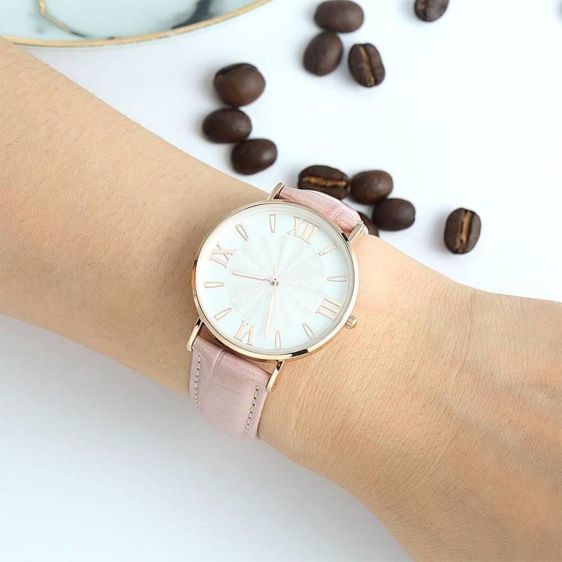 Reloj De Esfera Blanca Con Correa De Cuero Rosa De Cuarzo De Moda - Mujer