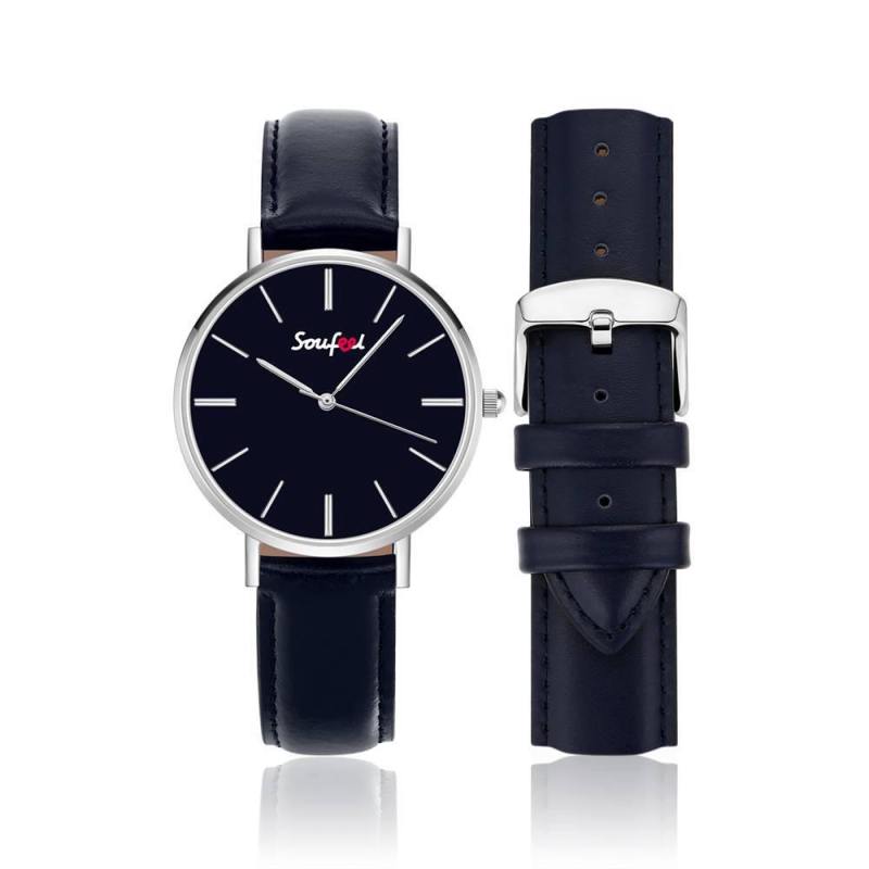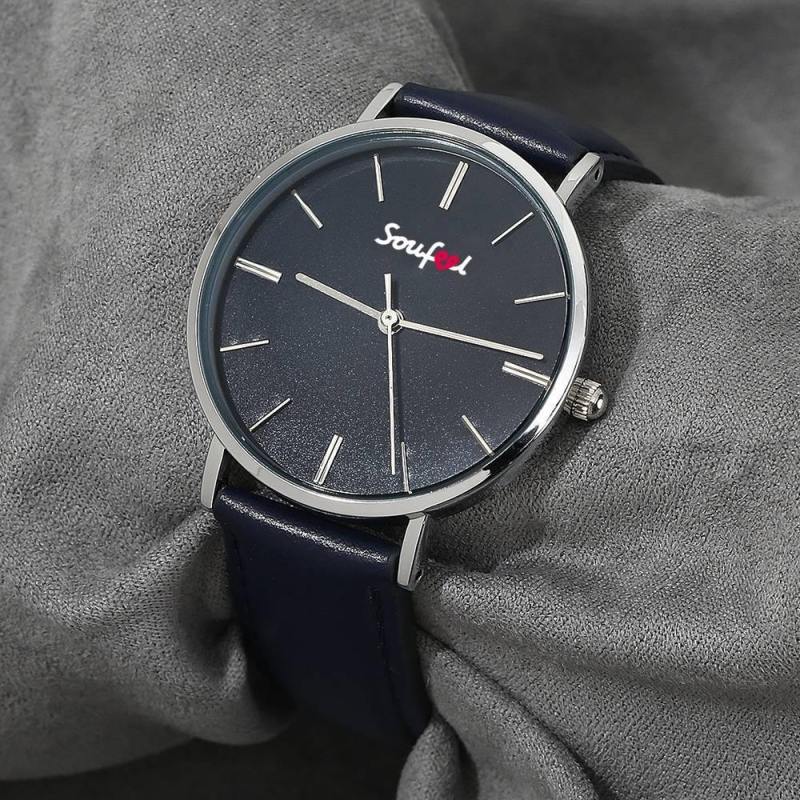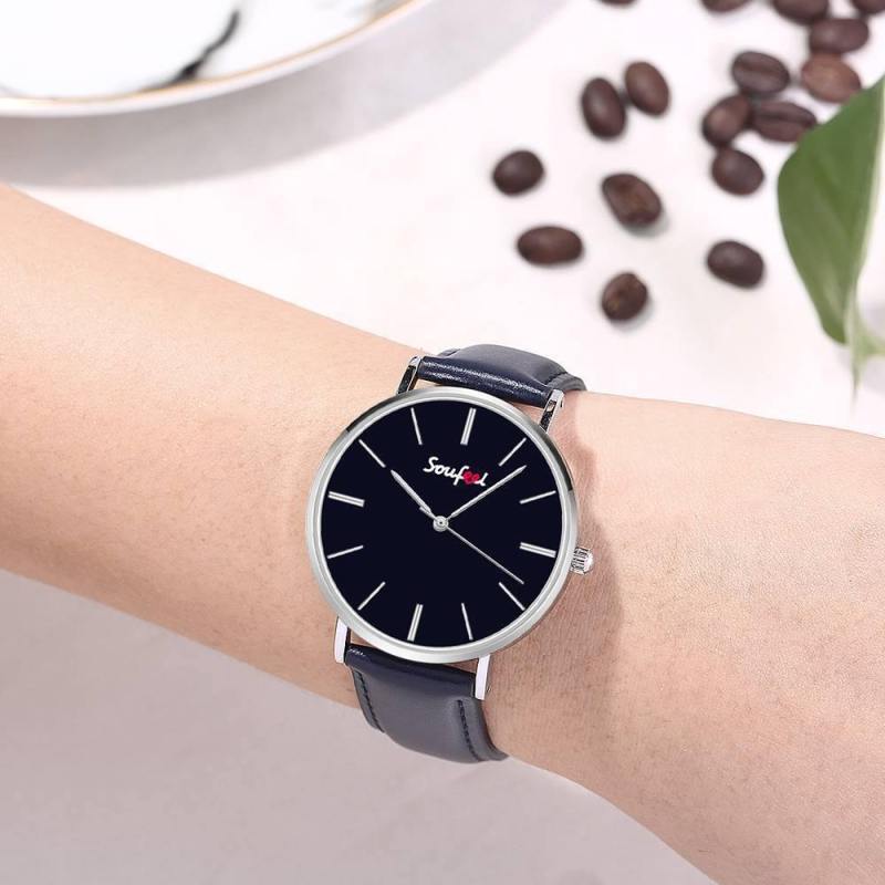 Reloj Clásico Para Mujer Con Correa De Cuero Azul Oscuro De 36 Mm