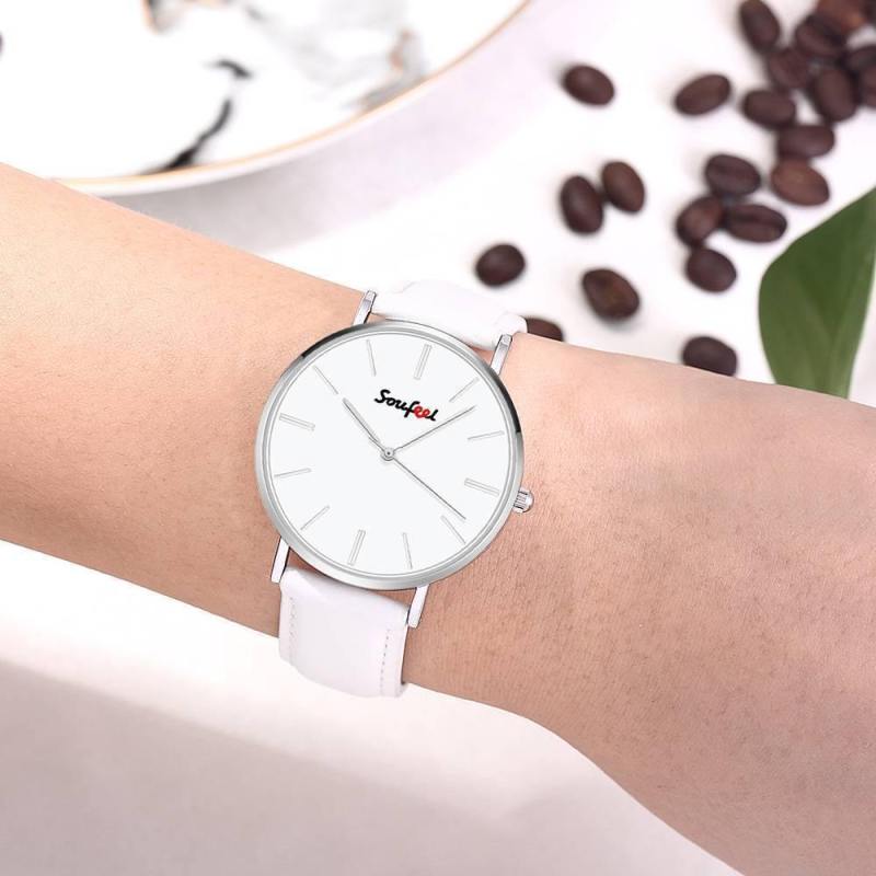 Reloj Clásico Para Mujer Soufeel Con Correa De Cuero Blanco De 36 Mm