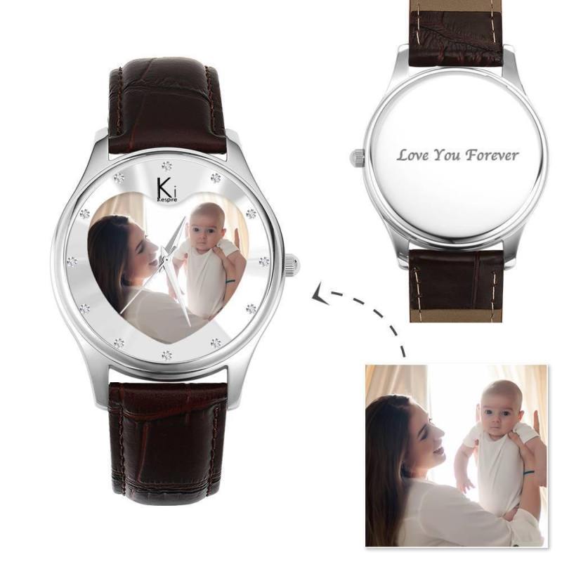 Mujer Reloj Grabable Con Foto 40 Mm Correa De Cuero Marrón