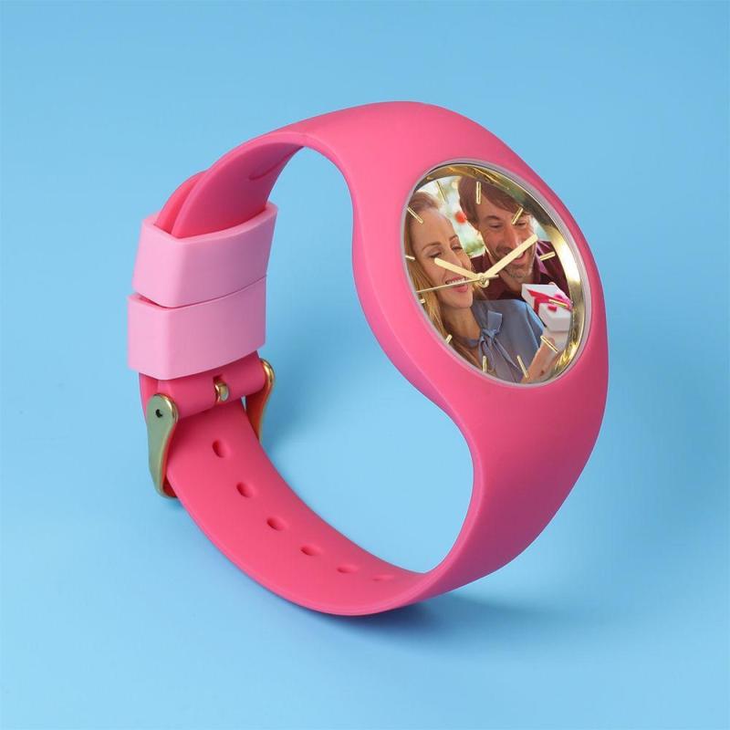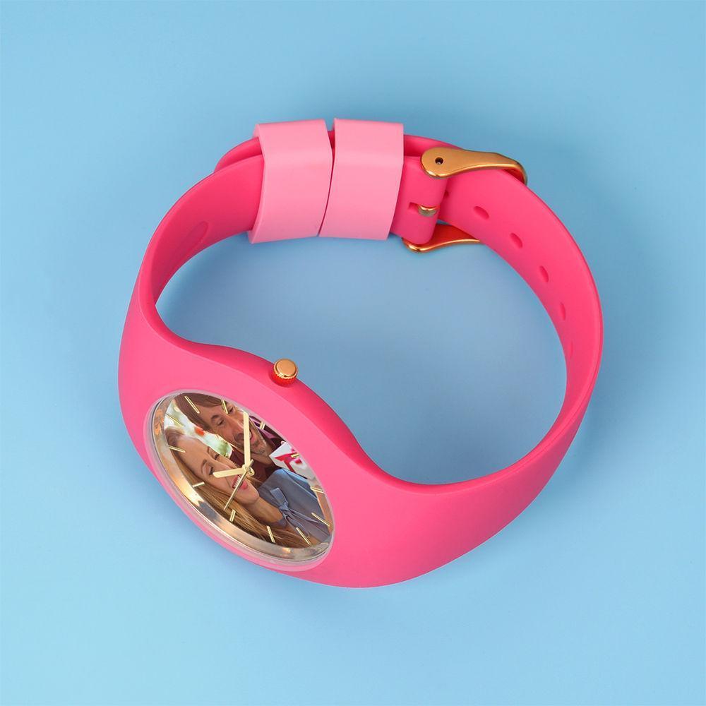 Mujer Reloj Con Foto Grabado De Silicona Reloj Con Foto Grabado Mujer 41Mm Correa Rosa