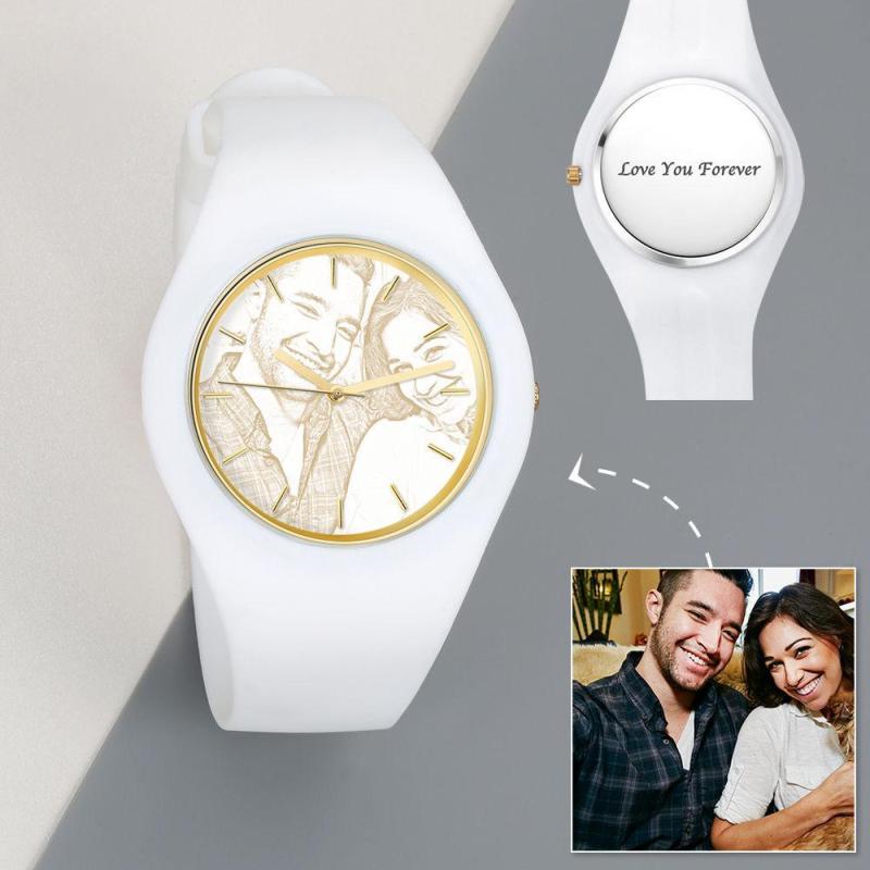 Mujer Reloj De Silicona Con Foto Grabable Reloj Con Foto Grabado De Mujer 41Mm Correa Rosa - Dorado