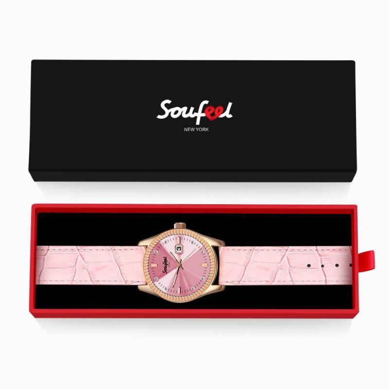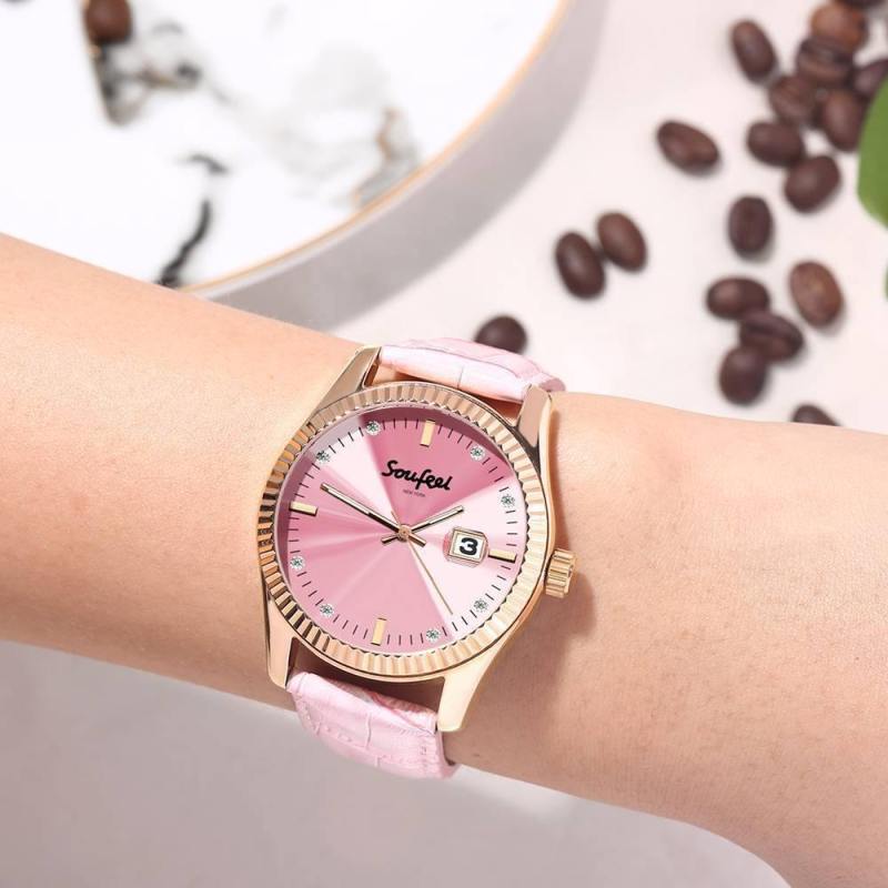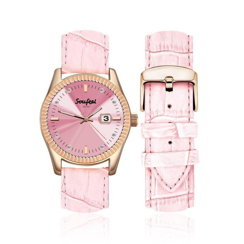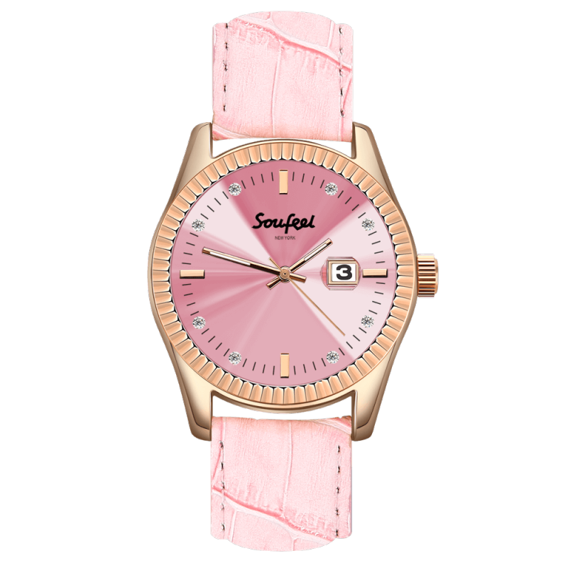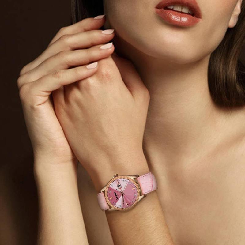 Reloj De Mujer Con Cristales Swarovski Correa De Cuero Rosa 38.5 Mm