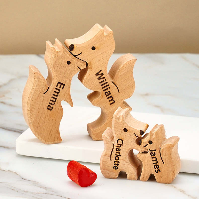 Rompecabezas De Madera De La Familia Fox Nombres Personalizados Regalos De Inauguración De La Casa